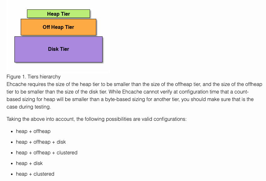Memory, Off Heap, Disk를 제공하는데 Off Heap는 GC가 적용되지 않아 매우 큰 캐시가 가능하다.
