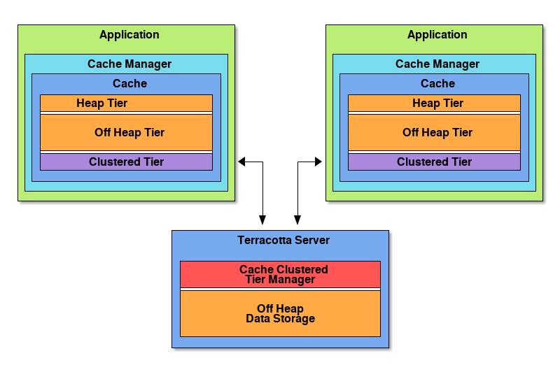 Distributed를 사용하기 위하여 Ehcache는 'Terracotta Server'를 지원한다. 단순한 로컬 캐시인 Ehcache를 확장하는 핵심 컴포넌트로 다음과 같은 특징을 가지고 있다
