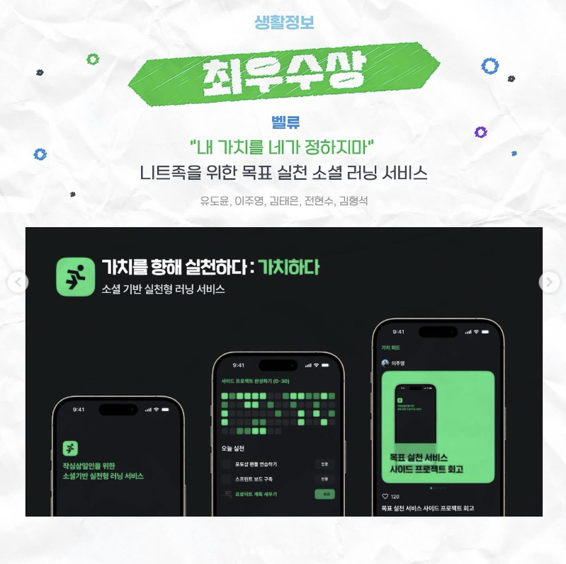 우리 팀의 아이디어는 ToDo플래너였다.심사위원들의 질문을 예측해서 사용자에게 동기부여를 위한 잔디밭(Github와 같은 것)과 기록 시스템 등을 추가했다.